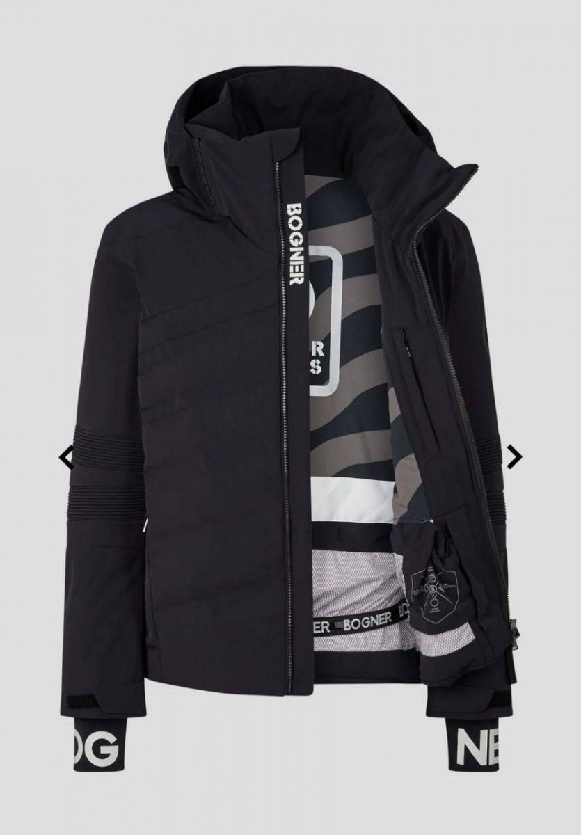 Вентиляционные молнии подмышками, регулируемый капюшон, эластичный снегозащитный пояс и усиление на локтях обеспечивают повышенный комфорт. Такие детали как вставка для увеличения капюшона с логотипом BOGNER и фирменные манжеты для большого пальца придают куртке выразительный фирменный вид.