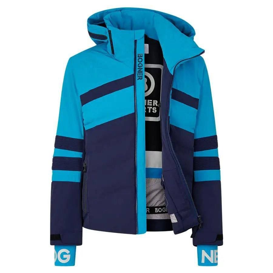 Вентиляционные молнии подмышками, регулируемый капюшон, эластичный снегозащитный пояс и усиление на локтях обеспечивают повышенный комфорт. Такие детали как вставка для увеличения капюшона с логотипом BOGNER и фирменные манжеты для большого пальца придают куртке выразительный фирменный вид.