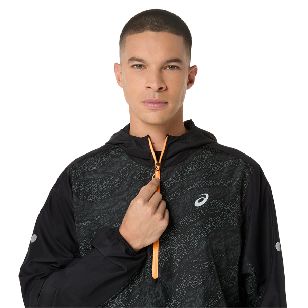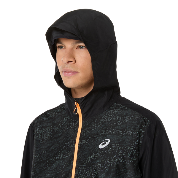 Ергономічний крій повторює лінії тіла, не обмежуючи рухів, а регульований капюшон і манжети забезпечують індивідуальну посадку. Світловідбивні елементи підвищують видимість у темний час доби, а мінімалістичний дизайн із логотипом ASICS підкреслює спортивний стиль бренду.